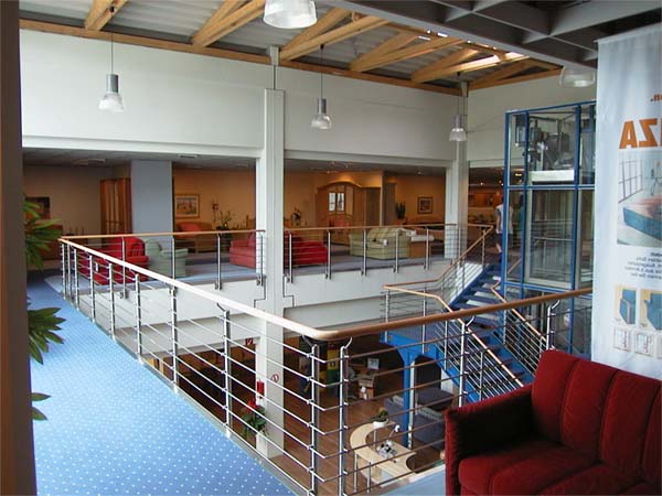 Edelstahlgeländer für eine freitragende Innentreppe.