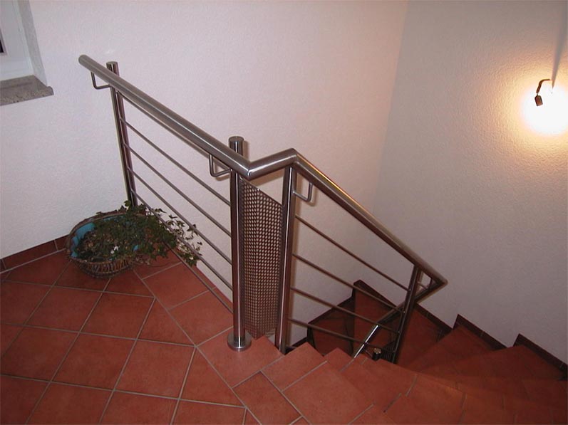 Kellertreppenabgrenzung aus Edelstahl mit einem